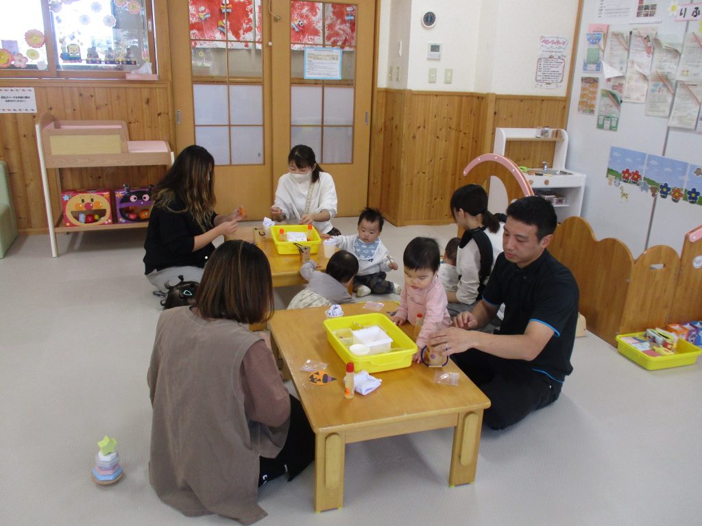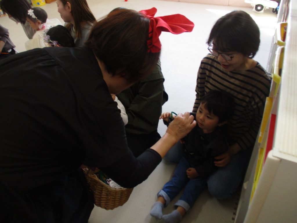 一緒に手遊びをした後はみんなにバックやお菓子をプレゼント🎁